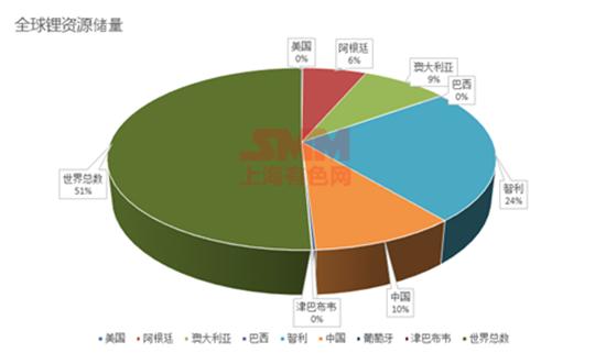 全球鋰資源儲量分布情況: