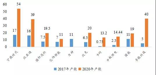 主要企業(yè)車用動力電池產(chǎn)能