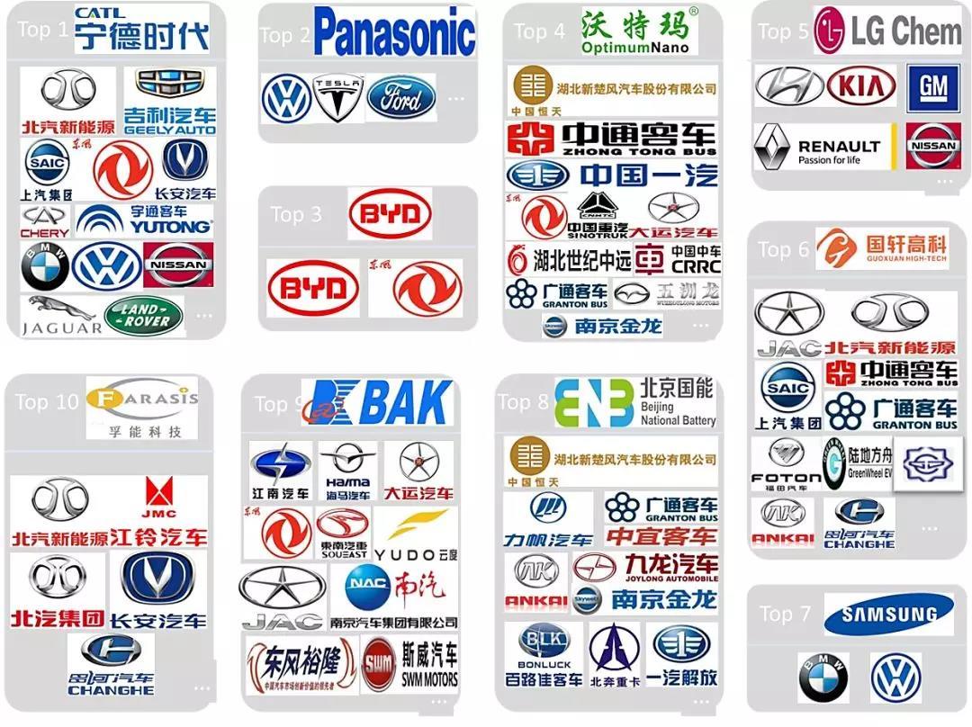 2017年全球動力電池銷量TOP10企業(yè)配套情況