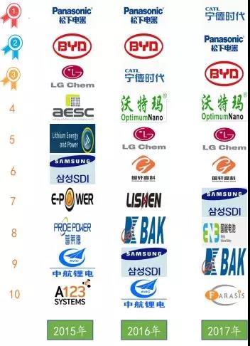 2015-2017年全球動力電池銷量前十企業(yè)