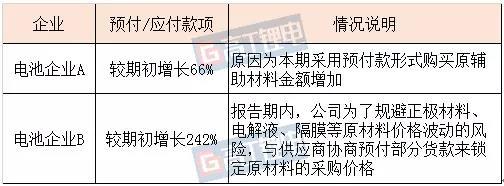 從下表中的2家動(dòng)力電池企業(yè)情況說明來看,針對(duì)上游原材料購(gòu)買行為成為預(yù)付/應(yīng)付款項(xiàng)同比增長(zhǎng)的最主要原因。