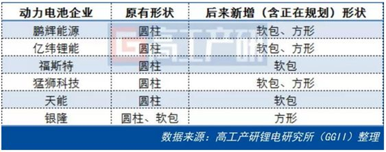 隨著國內(nèi)從韓國引進(jìn)的全自動(dòng)18650產(chǎn)線投產(chǎn),國內(nèi)18650動(dòng)力電芯日產(chǎn)能已超過1200萬只,已遠(yuǎn)大于需求,因此擴(kuò)產(chǎn)會(huì)有所收緊。圓柱動(dòng)力電池的自動(dòng)化程度高、單體能量密度高、成本低,但其pack復(fù)雜、循環(huán)壽命短、且快充性能不佳,因此其當(dāng)前主要用在微型車及物流車上,而A級及以上車型的裝車量還很少。短期來看國內(nèi)乘車企業(yè)更傾向于方形或軟包電池,因此2017年開始部分圓柱電池企業(yè)開始布局其他形狀的動(dòng)力電池。