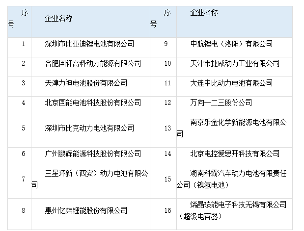 6. 汽車動力蓄電池和氫燃料電池行業(yè)白名單(第一批)公告