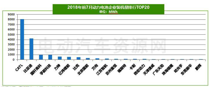 根據(jù)真鋰研究數(shù)據(jù),2018年1-7月新能源汽車動力電池裝機(jī)量達(dá)19.28GWh,同比增長108.16%。企業(yè)方面,寧德時代與比亞迪繼續(xù)位居動力電池行業(yè)龍頭,兩者市場份額合計(jì)達(dá)到64%;前十企業(yè)的市場份額總和在87%以上,市場集中度進(jìn)一步提升。