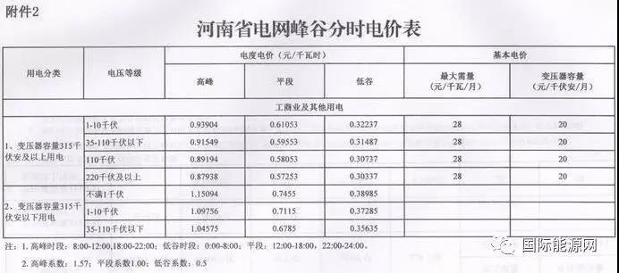 電價(jià)的調(diào)整、擴(kuò)大峰谷電價(jià)差,給儲能留出發(fā)展空間,以河南“不滿1千伏”一般工商業(yè)用電的峰谷差價(jià)為例,峰時(shí)電價(jià)1.5094元,谷時(shí)電價(jià)0.38985元,峰谷電價(jià)差為1.11955元。