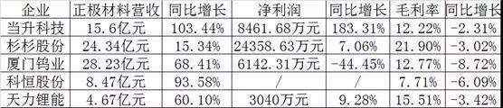 但是在凈利潤(rùn)方面,除當(dāng)升科技大增以外,其余企業(yè)的凈利增長(zhǎng)幅度都比較小,廈門鎢業(yè)甚至出現(xiàn)大幅下滑。而在產(chǎn)品毛利率方面全部則是全面下滑,這也是三元正極材料企業(yè)增收不增利的主要原因。