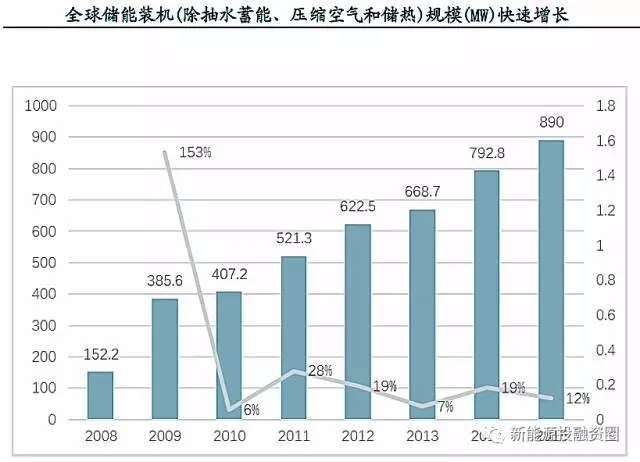 從全球角度看,自2008年以來,儲能進入了快速成長階段,裝機規(guī)模以每年20%左右的速度快速增長。我國自2013年以來,隨著分布式光伏裝機容量快速增長,以及2015年下半年以來電力體制改革加速進行,部分地區(qū)電價機制更加靈活,用戶側使用儲能能夠獲得即時且明顯的經濟效益,用戶側儲能裝機容量快速增長。