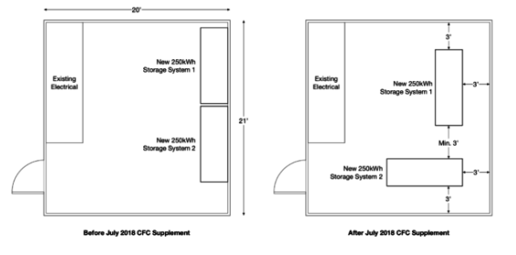 新的補充條款將會帶來一些影響室內和室外系統(tǒng)的重大變化。大部分新規(guī)范都采用新的NFPA 855“固定式儲能系統(tǒng)安裝標準”,這仍然只是一個提議的標準,但將在2020年生效。以下概述是與鋰離子電池有關的要求: