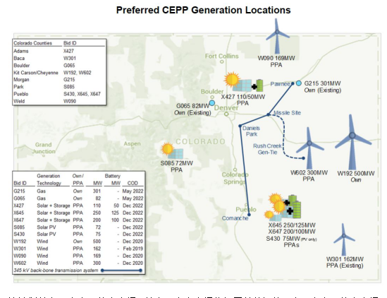 該計劃共有五個太陽能發(fā)電場,其中三個發(fā)電場將部署儲能設施。這三個太陽能發(fā)電場分別為:位于Pueblo地區(qū)一個525 MW太陽能發(fā)電設施和225MW/900 MWh儲能系統(tǒng);位于該州西部Par的一個72兆瓦太陽能發(fā)電設施;在Adams還有一個110MW太陽能發(fā)電設施和50兆瓦/100兆瓦時的電池儲能系統(tǒng)。