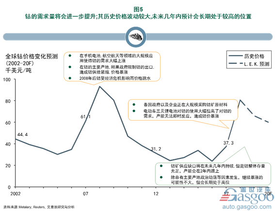 為此,我們預(yù)計(jì)在2019年之后,除非有特殊因素的影響(例如,主要產(chǎn)地剛果的局勢(shì)不穩(wěn)定性),鈷的價(jià)格會(huì)穩(wěn)定并且回落,只是無(wú)法回落到2017年之前的低點(diǎn)。長(zhǎng)期來看,對(duì)汽車動(dòng)力電池企業(yè)仍然應(yīng)該加強(qiáng)對(duì)上游資源的把控,適當(dāng)進(jìn)行投資。