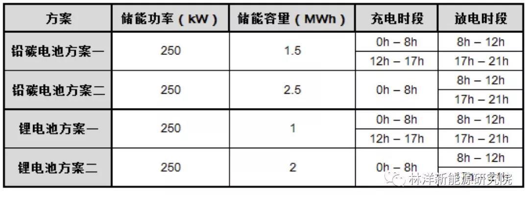 因為企業(yè)用電負(fù)荷在250kW左右,所以選擇容量為250kW的PCS。根據(jù)選用電池類型的不同和充放電時間段的不同形成以下四種方案。在這四種方案中,方案一的電池容量根據(jù)每天電池充放電2次選擇,而方案二電池容量根據(jù)每天電池充放電1次選擇。