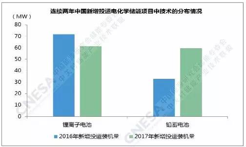 從技術(shù)分布上看,鋰離子電池和鉛蓄電池的功率規(guī)?;境制?,比重分別為51%和49%,同時鉛蓄電池的同比增速最大,超過81%。