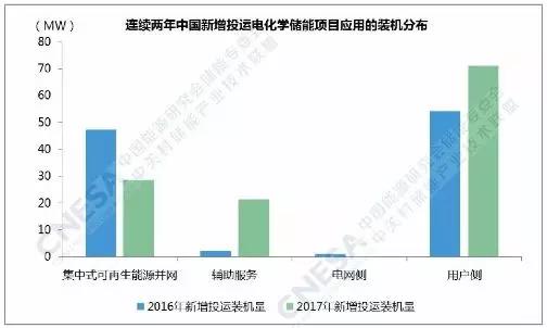 從應(yīng)用分布上看,新增投運項目全部應(yīng)用在集中式可再生能源并網(wǎng)、輔助服務(wù)和用戶側(cè)領(lǐng)域。其中,用戶側(cè)領(lǐng)域的功率規(guī)模最大,超過70MW,輔助服務(wù)領(lǐng)域的同比增速最大,接近1000%。