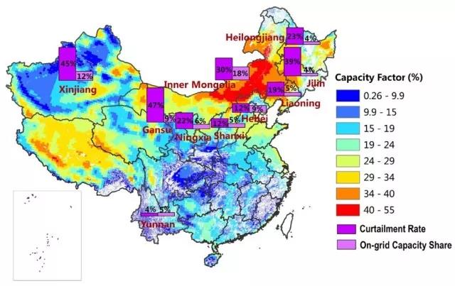 中國(guó)儲(chǔ)能網(wǎng)訊:近年來(lái)我國(guó)很多省份發(fā)生大面積的、嚴(yán)重的棄風(fēng)限電問(wèn)題,引起各界廣泛關(guān)注。大量清潔、有效的風(fēng)力發(fā)電裝機(jī)在有風(fēng)時(shí)不讓并網(wǎng)發(fā)電,導(dǎo)致清潔能源被白白浪費(fèi)。這是我國(guó)能源生產(chǎn)革命、清潔能源發(fā)展轉(zhuǎn)型過(guò)程中遇到的一個(gè)障礙。僅2016年,我國(guó)棄掉的潛在風(fēng)電量就高達(dá)500億千瓦時(shí),超過(guò)三峽水電站當(dāng)年發(fā)電量的一半。同年,我國(guó)平均棄風(fēng)率也高達(dá)17%;換句話說(shuō),有17%的風(fēng)電裝機(jī)被迫停擺、得不到任何利用。這不得不說(shuō)跟經(jīng)濟(jì)新常態(tài)下我國(guó)電力部門發(fā)生的產(chǎn)能過(guò)剩問(wèn)題密切相關(guān)。近年來(lái)的棄風(fēng)問(wèn)題主要集中在我國(guó)三北地區(qū),即位于我國(guó)東北、華北和西北的風(fēng)電裝機(jī)大?。ㄒ?jiàn)下圖所示)。另外,17%的棄風(fēng)率也遠(yuǎn)遠(yuǎn)超過(guò)國(guó)際風(fēng)電大國(guó)的正常棄風(fēng)率;后者通常在1-3%的水平。