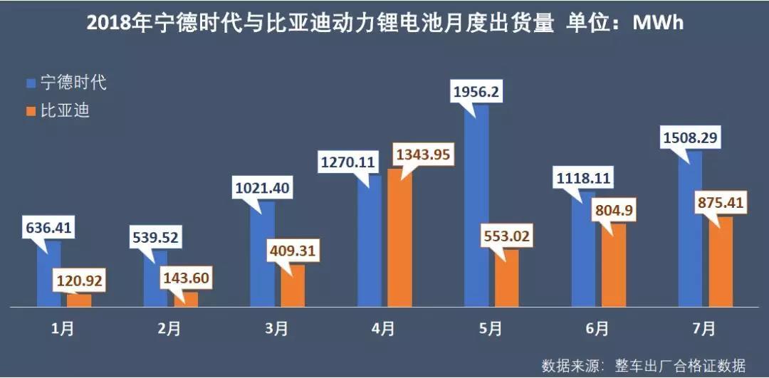 寧德時代7月出貨量比6月增長了34.9%,比亞迪則僅增長了8.76%。本月增幅最高的是天津捷威,97.64MWh的出貨量比上月大漲205.4%,其次是天津力神,月度漲幅高達131.1%,深圳比克的出貨量較上月也有可觀增長,漲幅97.3%。