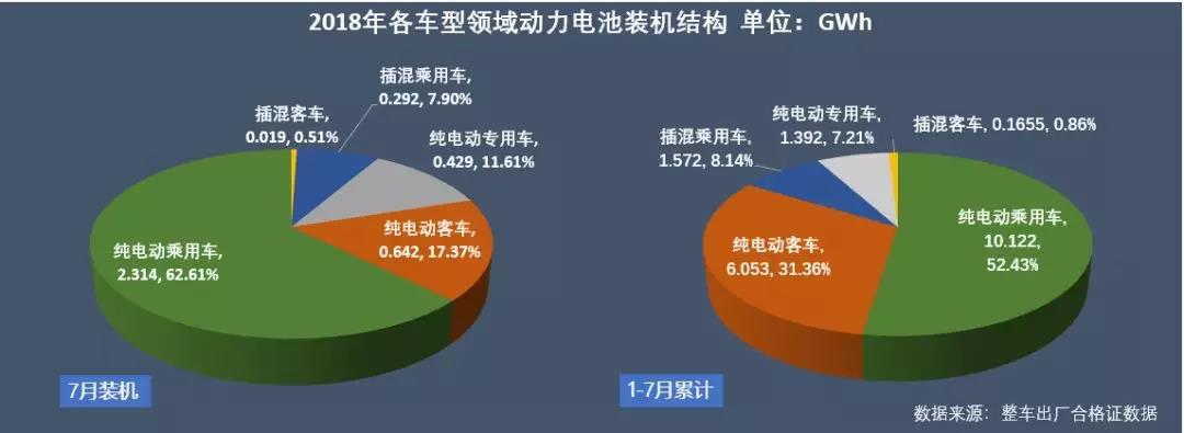 今年前7個月動力電池累計裝機量19.32GWh,其中純電動乘用車板塊電池裝機量10.12GWh,占年內(nèi)動力電池累計裝機的52.43%;純電動客車電池總裝機量6.053GWh,占年內(nèi)動力電池累計裝機量的31.36%。