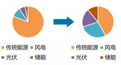 隨著能源革命的推進(jìn),大電網(wǎng)多級集中式結(jié)構(gòu)會逐漸演變?yōu)榇箅娋W(wǎng)與微網(wǎng)結(jié)合的集中/分散式結(jié)構(gòu)。未來,傳統(tǒng)能源的比例會逐步減少,風(fēng)光等可再生能源的比例會逐漸增大。