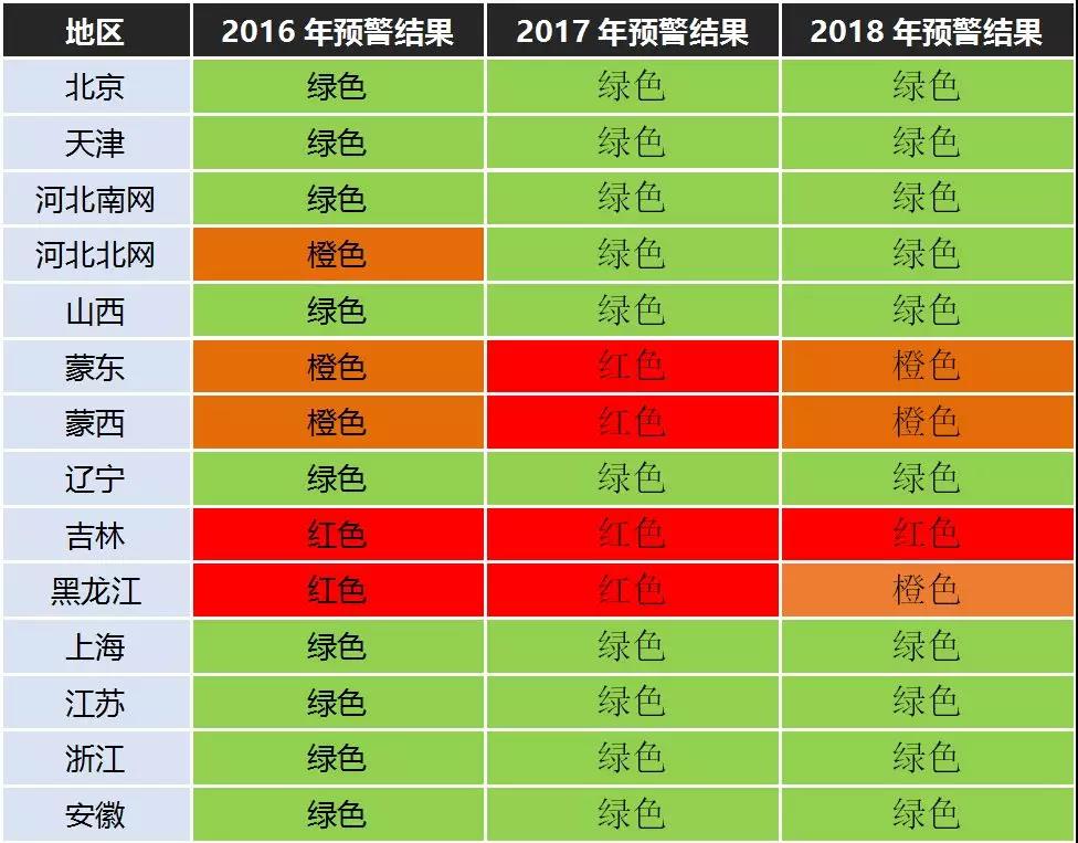 從2016-2018年三年的監(jiān)測結(jié)果看來,河北北網(wǎng)風電開發(fā)條件好轉(zhuǎn),由橙色轉(zhuǎn)為綠色并連續(xù)兩年保持;蒙東、蒙西由橙色轉(zhuǎn)為紅色,表明上述兩地區(qū)風電投資條件轉(zhuǎn)差,但2018年轉(zhuǎn)為橙色,表明投資環(huán)境有所好轉(zhuǎn);而吉林、甘肅等地區(qū)連續(xù)三年作為紅色預警地區(qū),即在暫停核準的情況下這些地區(qū)風電開發(fā)條件仍沒得到明顯改善。此外,黑龍江風電開發(fā)條件有所好轉(zhuǎn),由紅色轉(zhuǎn)為橙色,寧夏則由紅色轉(zhuǎn)為綠色。