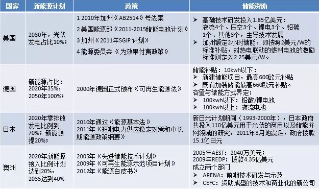 澳大利亞:澳大利亞對儲能的發(fā)展也是先立法,后補貼,比如05年出臺的先進儲能技術計劃,集中補貼了一批儲能項目,包括Redflow和zbb等,金額共計超過2000w美元,09年以后,成立兩個部門,扶持儲能技術發(fā)展,一個負責儲能技術的前期研發(fā)示范,一個為具有成熟技術或商業(yè)化潛力的新公司提供幫助。