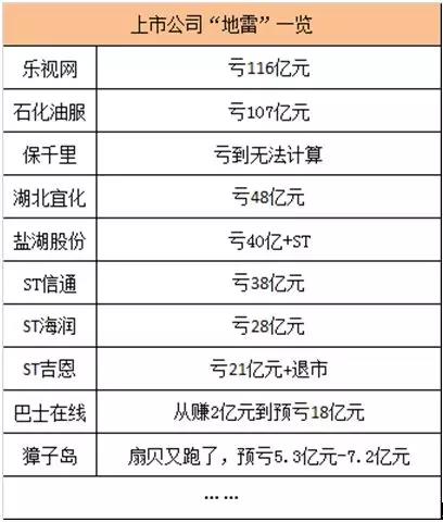 隨著滬深交易所業(yè)績(jī)預(yù)告最后時(shí)限的到來(lái),國(guó)內(nèi)大多數(shù)上市公司交出了過(guò)去一年的成績(jī)單。但隨之而來(lái)的是A股地震,逾百只個(gè)股跌停,以及各種令人啼笑皆非的預(yù)虧理由。