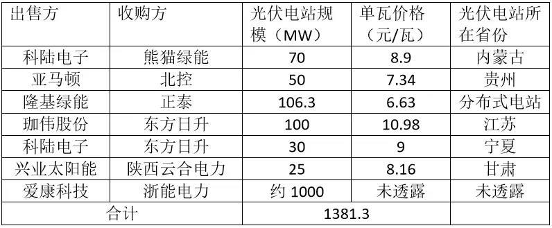 2018年1月,浙江正泰新能源開(kāi)發(fā)有限公司宣布將向浙江省水利水電投資集團(tuán)有限公司出售其位于甘肅、寧夏等地的9個(gè)光伏電站項(xiàng)目公司各51%的股權(quán),交易總金額為5.39億元,交易所涉及的光伏電站裝機(jī)容量合計(jì)405MW。