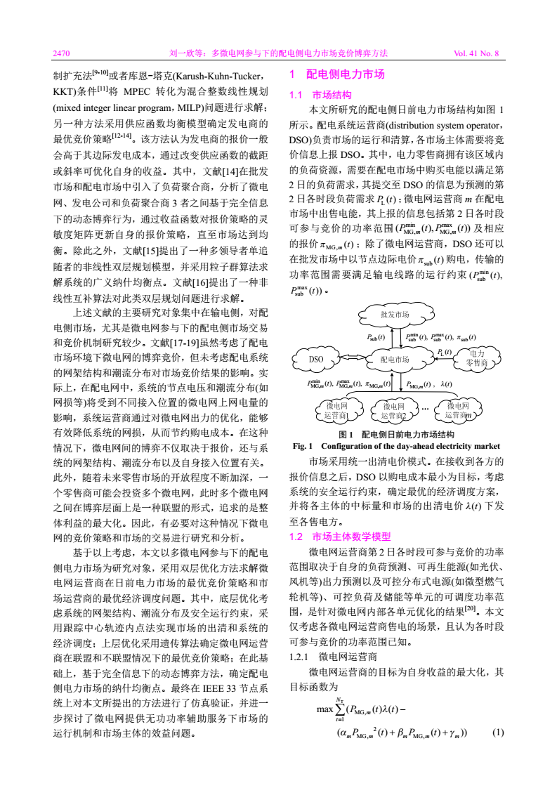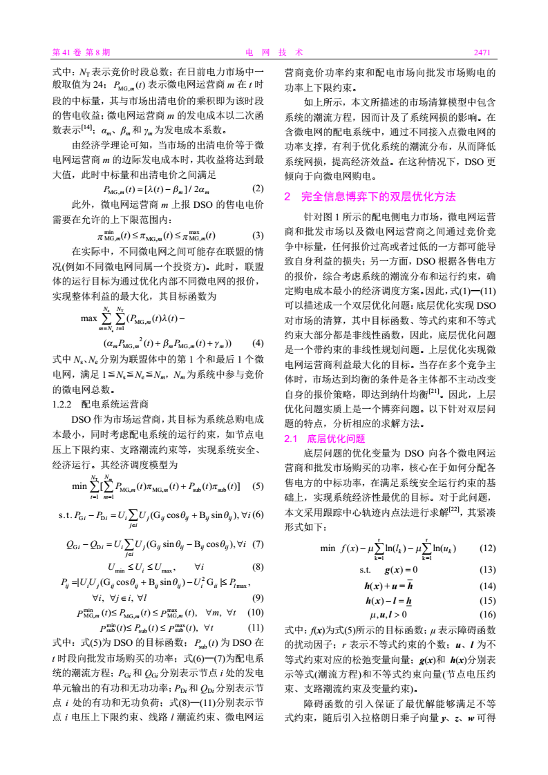 關(guān)鍵詞:微電網(wǎng);配電市場(chǎng);雙層優(yōu)化;動(dòng)態(tài)博弈
