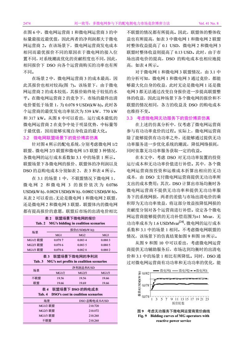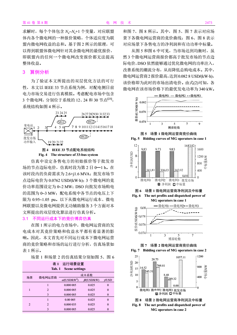 最終在 IEEE 33 節(jié)點(diǎn)配電系統(tǒng)算例中對(duì)所提出的方法進(jìn)行了仿真驗(yàn)證,并進(jìn)一步分析了微電網(wǎng)運(yùn)營(yíng)商提供無功輔助服務(wù)下各市場(chǎng)主體的利益分配問題。