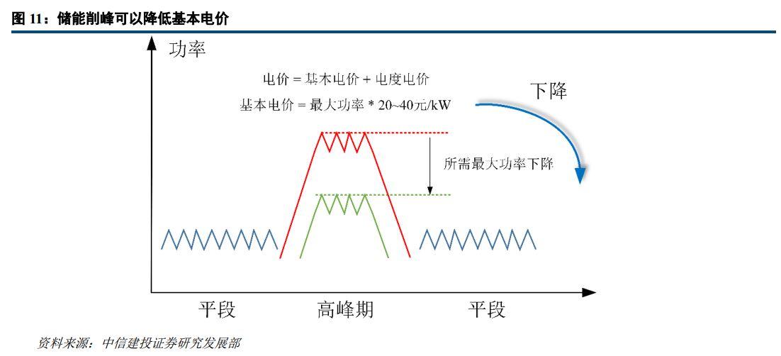 儲能有助于企業(yè)管理容量費用。 對于大的工業(yè)企業(yè),因現(xiàn)行的兩部制電價,供電部門會以其變壓器容量或最大需用量為依據(jù),每月固定收取一定的基本電價。這些企業(yè)可以利用儲能系統(tǒng)進行容量費用管理,即在用電低谷時儲能,在高峰時釋放,實現(xiàn)在不影響正常生產(chǎn)的情況下,降低最高用電功率,從而降低容量費用。