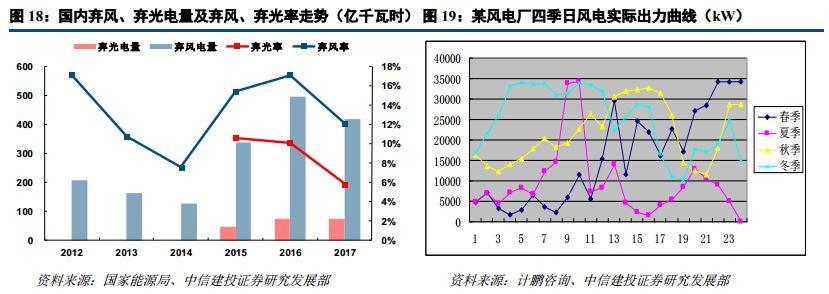 棄風、棄光問題掣肘可再生能源的進一步發(fā)展。 由于可再生能源電力的發(fā)電量受季節(jié)和天氣條件的影響而波動性較大,且與穩(wěn)定的用電需求不完全匹配,容易導致電網(wǎng)頻率波動較大,為滿足用戶側(cè)負荷的需求,且減少電網(wǎng)頻率波動,經(jīng)常會產(chǎn)生棄風、棄光現(xiàn)象,導致新能源利用率偏低。 2017 年全國棄風、棄光電量分別達到419、 73 億千瓦時,棄風率 12%、棄光率 6%。 2017 年政府工作報告中首次提出要有效緩解棄風、棄光狀況; 11月發(fā)改委、國家能源局發(fā)布《解決棄水棄風棄光問題實施方案》,要求到 2020 年在全國范圍內(nèi)有效解決棄風棄光問題。