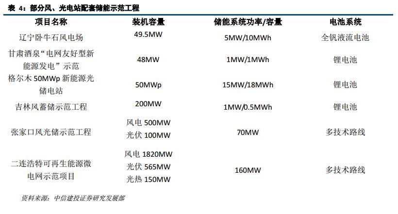 目前國內(nèi)已經(jīng)有大量風、光儲電站示范項目投入使用。 以張家口風光儲示范工程為例,通過風、光、儲的6 種組合發(fā)電方式與平滑處理、跟蹤計劃、系統(tǒng)調(diào)頻、削峰填谷 4 種功能的結(jié)合,取得了明顯效果,為大規(guī)模儲能系統(tǒng)在新能源并網(wǎng)領(lǐng)域的深入推廣提供了良好借鑒。截止 2017 年底國內(nèi)集中式光伏電站裝機量約 101GW,風電裝機量約 164GW,假設(shè)配套 10%儲能裝置,將帶來 26.5GW 儲能裝機量需求量;并且隨著新能源裝機量的不斷提升,市場空間將持續(xù)增大。