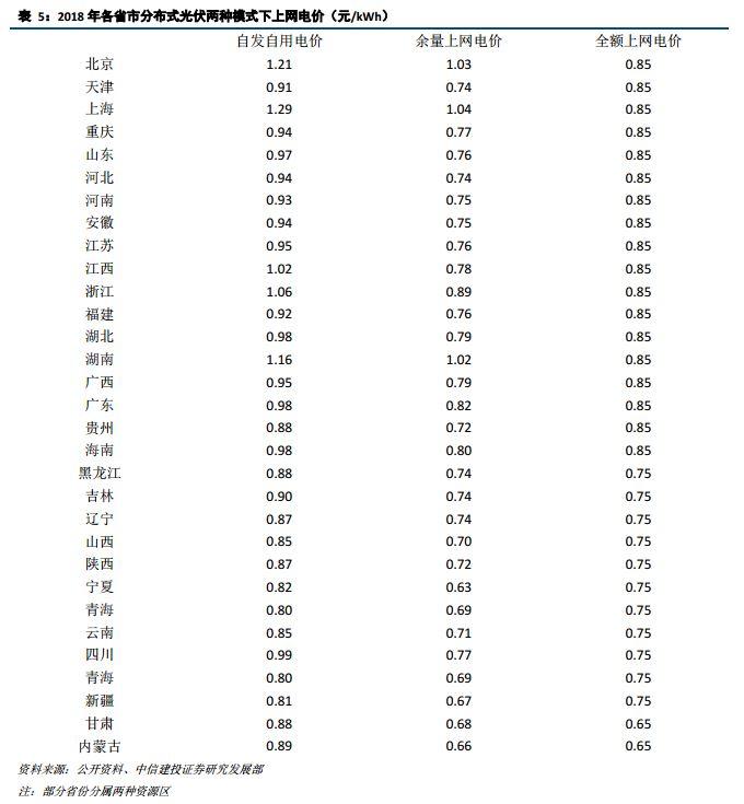 全額上網(wǎng)電價=光伏標桿電價(分一、二、三類資源區(qū))。