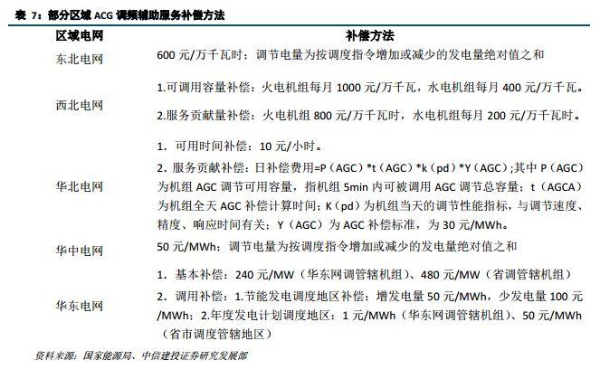 目前火電應用于輔助服務仍面臨技術(shù)端、成本端的壓力。 從技術(shù)端來看,火電機組響應時滯長,不適合參與更短周期調(diào)頻,一次調(diào)頻機組受蓄熱制約而存在調(diào)頻量明顯不足,參與二次調(diào)頻機組爬坡速率跟不上 AGC 指令,一、二次調(diào)頻協(xié)聯(lián)配合也尚需加強。 從成本端來看,一方面火電機組頻繁變動功率將加大排放物排放量控制難度,火電廠出于環(huán)保壓力將被迫采用更優(yōu)質(zhì)燃煤增加成本,低負荷工作狀態(tài)下單位煤耗也更高;另一方面頻繁調(diào)頻將降低火電機組使用率,并加速設(shè)備磨損,增加維修成本,目前輔助服務成本已經(jīng)成為火力發(fā)電成本重要組成部分。此外,三北地區(qū)新能源與火電重合度高,但火電約一半為熱電機組也限制其參與調(diào)頻能力。