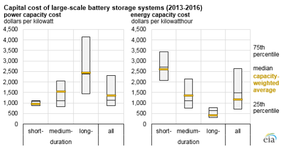 美國能源信息署2013-2016年的大規(guī)模電池儲(chǔ)能系統(tǒng)成本比較
