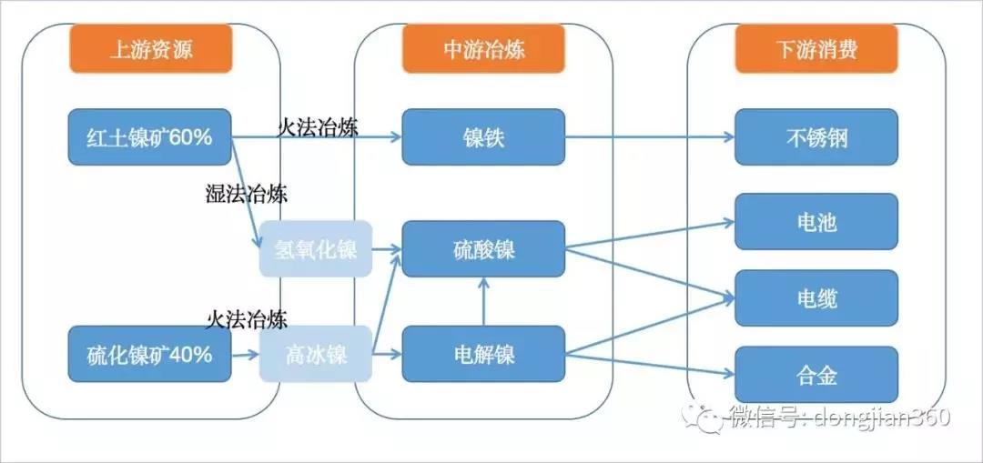 對(duì)于三元電池中的金屬鎳,總體表現(xiàn)為供需失衡,鎳價(jià)或持續(xù)向好。鎳的原材料是紅土鎳礦和硫酸鎳礦,硫酸鎳礦的增產(chǎn)有限,紅土鎳礦是全球最主要的鎳供應(yīng)來源,但是紅土鎳礦的產(chǎn)品是鎳鐵,再通過鎳鐵生產(chǎn)不銹鋼,而從紅土鎳礦到氫氧化鎳到硫酸鎳的生產(chǎn)線全球一共有兩家企業(yè)有這種生產(chǎn)線,而且從生產(chǎn)的角度講穩(wěn)定性不大。所以未來鎳的增量主要來自于紅土鎳礦。