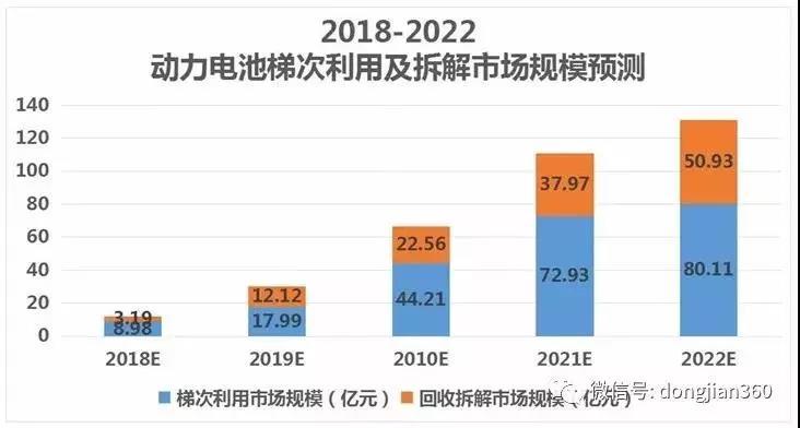 2018年為動(dòng)力電池回收再利用元年,2020年為動(dòng)力電池回收再利用爆發(fā)年。伴隨著動(dòng)力電池報(bào)廢量的不斷增長(zhǎng),未來十年電池回收很可能達(dá)到百億美元的市場(chǎng)份額。目前動(dòng)力電池回收后的方向主要是梯次利用及拆解,基于現(xiàn)在的金屬回收價(jià)格以及技術(shù)情況,磷酸鐵鋰電池回收之后梯次利用應(yīng)用廣而三元電池回收之后更多的是報(bào)廢拆解。