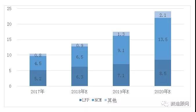 未來(lái)NCM和NCA將成為乘用車車用正極材料主流,磷酸鐵鋰主要用于客車、微型電動(dòng)車、電動(dòng)自行車(替代鉛酸),預(yù)計(jì)2020年三元材料使用量占車用材料的60%左右。