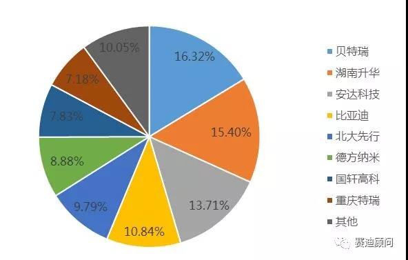 我國(guó)LFP產(chǎn)業(yè)集中度較高,前五家企業(yè)占據(jù)了66%的市場(chǎng)份額,其中貝特瑞一句多年經(jīng)營(yíng)負(fù)極材料累積的客戶資源,躍居榜首;其后依次是湖南升華與安達(dá)科技;比亞迪受困于自身產(chǎn)品能量密度等原因,加大了外購(gòu)正極比例,LFP市場(chǎng)份額降至10.48%。