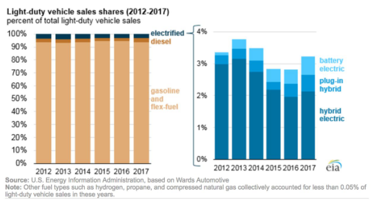 盡管是全美最大的電動汽車市場,加利福尼亞要實現(xiàn)這一目仍然有很長的路要走。截至2017年10月,該州共有337,482輛零排放車輛,占該州車輛總數(shù)的4.5%。