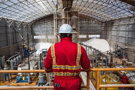 (圖示:玻利維亞的阿塔卡瑪高原。礦業(yè)公司Comibol的鉀礦開采負(fù)責(zé)人利諾·菲塔(Lino Fita)在視察他的工廠。該地區(qū)的鹵水富含鉀和鎂,這使得提取鋰變得更加困難和昂貴。鹽水會(huì)在蒸發(fā)池中放上好幾個(gè)月,蒸發(fā)掉多余的水分,把鹽分開。然后對(duì)剩余的化合物進(jìn)行提純和處理。由于員工的匱乏,很少有鋰加工專家在工廠工作。在過去,只有三個(gè)人管理著工廠的整個(gè)生產(chǎn)線。)
