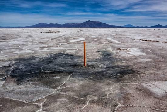 (圖示:玻利維亞的阿塔卡瑪高原。工人們?cè)谑澜缟献畲蟮柠}堿地地表鉆孔。他們的目標(biāo)是在富含大量鎂和鉀的鹽水中尋找鋰元素含量較高的地方。自21世紀(jì)以來,世界上大部分的鋰都是通過這種方式提取的,而不是使用礦砂資源。)
