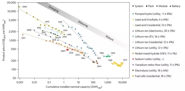 O. Schmidt et al. The future cost of electrical energy storage based on experience rates. Nature Energy 2017, 2, 17110.