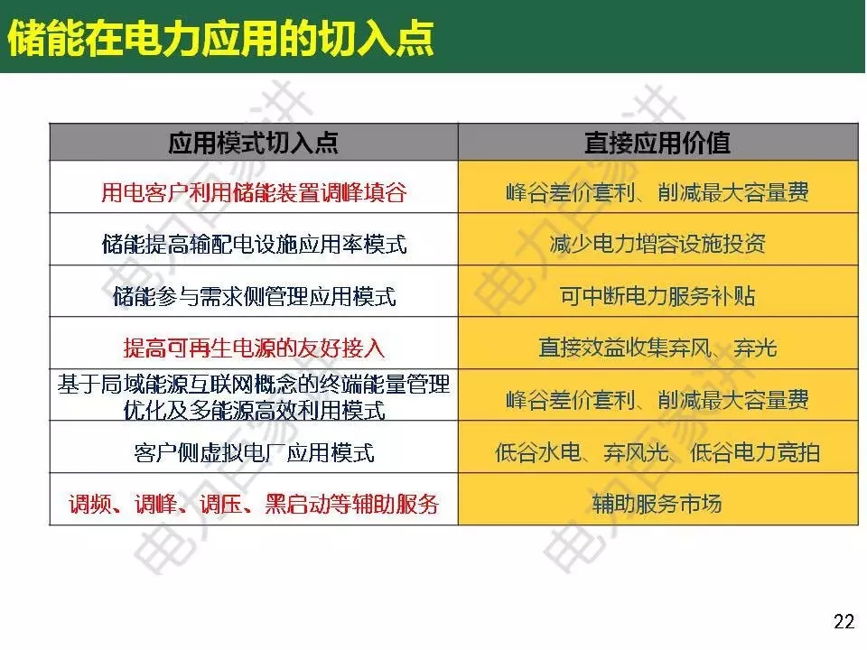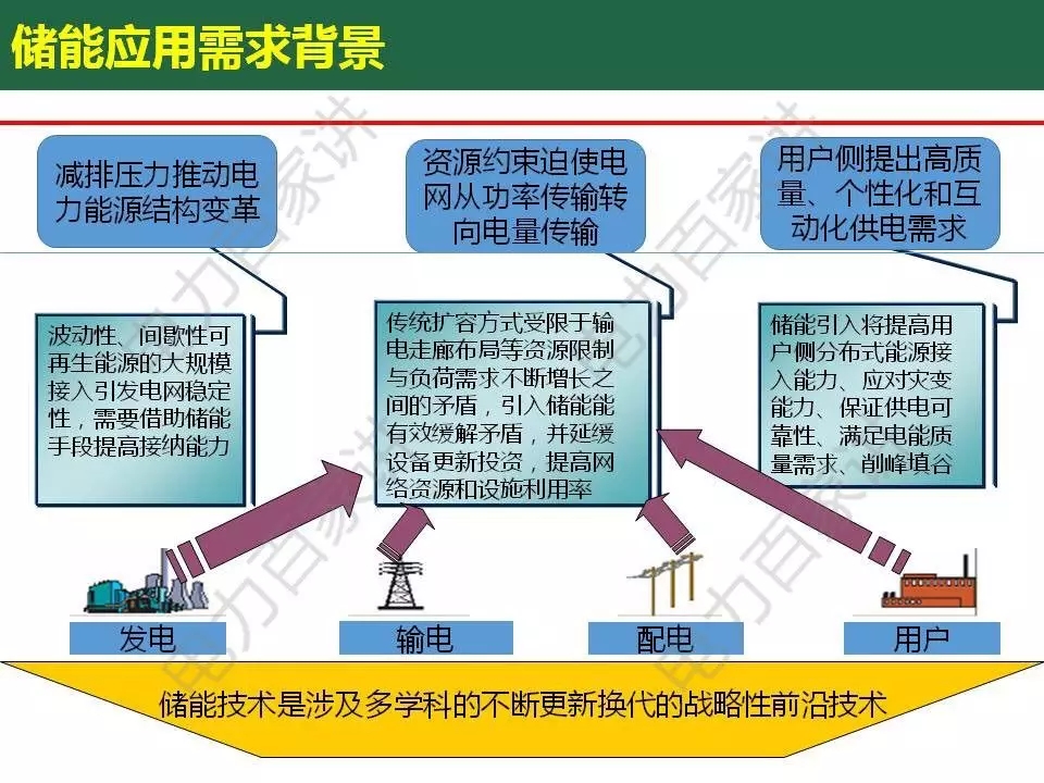 近期中國電力科學院惠東教授發(fā)表了題為《電力儲能發(fā)展趨勢預判》的報告。他在報告中大膽預判中國將成為未來儲能需求規(guī)模最大的國家。增長的動力一方面將來自于平衡可再生能源發(fā)電的需求;一方面將來自于電力負荷的增長,惠東預計匹配發(fā)達國家的用電水平,我國人均用電量要大約翻一倍,達到人均8000~9000度左右(目前是人均4000度多),這個過程中,如果按照傳統(tǒng)的擴容思路,電網(wǎng)要照現(xiàn)在的2.5倍的規(guī)模來建設。而引入儲能將有效延緩設備更新投資,提高網(wǎng)絡資源和設施利用率。