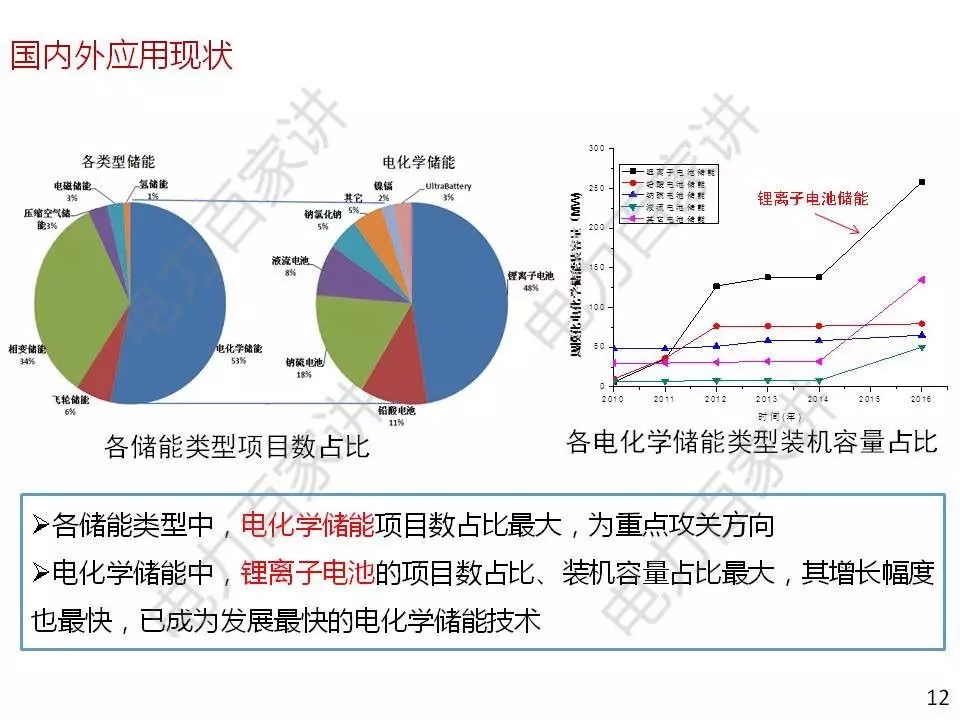 惠東在這份報告中指出,鋰電子電池化學儲能技術是過去5年發(fā)展最快的儲能技術,電動汽車市場刺激了人力、財力在鋰電池領域的投入,不管從規(guī)模上,還是技術儲備上,惠東認為它將有望成為儲能市場化過程中的技術先鋒。