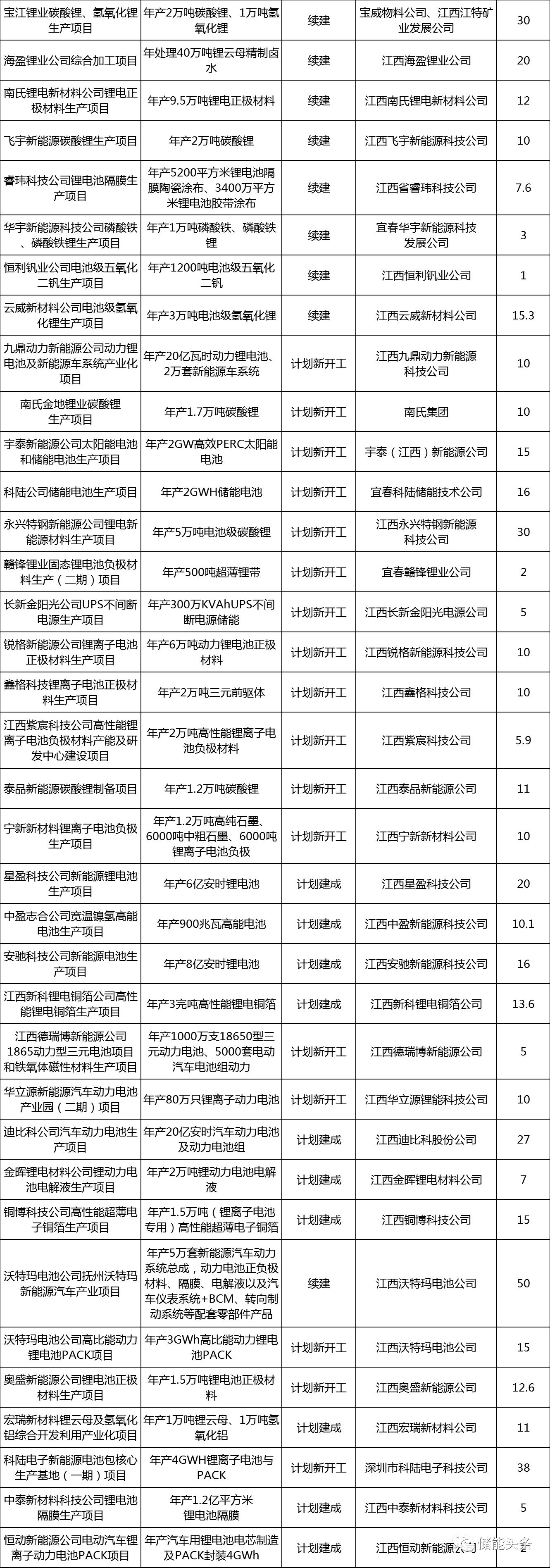 65個儲能項目中,有5個投資金額超過40億元,分別為江西巨賢聚酰亞胺鋰電池隔膜生產(chǎn)基地項目、通瑞鋰電隔膜生產(chǎn)項目、沃特瑪電池公司撫州沃特瑪新能源汽車產(chǎn)業(yè)項目、遠(yuǎn)東福斯特高能量密度動力儲能鋰電池研發(fā)及產(chǎn)業(yè)化項目、以及科陸電子新能源電池包核心生產(chǎn)基地(一期)項目。