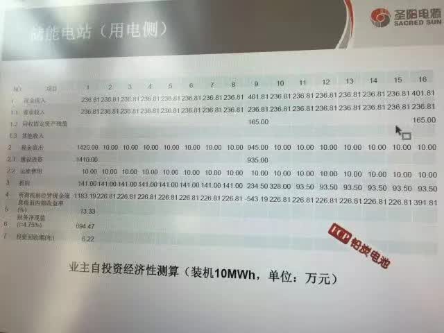 1MWH儲(chǔ)能=200萬元投資=33萬度/年儲(chǔ)能電力=282噸二氧化碳減排=26.4萬元電費(fèi)收入+若干補(bǔ)貼收入=10年穩(wěn)定的IRR