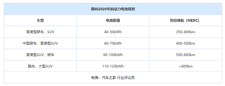 目前主流的電池系統(tǒng)能量密度在140kWh/kg-160kWh/kg之間,續(xù)航里程設(shè)計(jì)已經(jīng)普遍達(dá)到350-400Km。 國(guó)內(nèi)高端電動(dòng)車(chē)型的規(guī)劃是在2020年左右,通過(guò)電芯設(shè)計(jì)的優(yōu)化,往上把續(xù)航里程提高到500Km。目前來(lái)看國(guó)外的大眾MEB平臺(tái)、寶馬的iNext系列和奔馳的EQ系列都是規(guī)劃了不同的能量密度,通過(guò)控制總的電池裝載量來(lái)選擇。