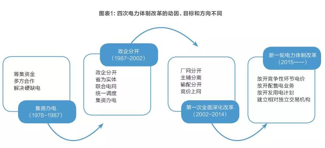 改革的本質(zhì)是打破舊格局、建立新秩序。以1978年改革開放作為起端,我國電力體制改革先后經(jīng)過四個階段,每一個階段的改革動因、改革方法不盡相同。