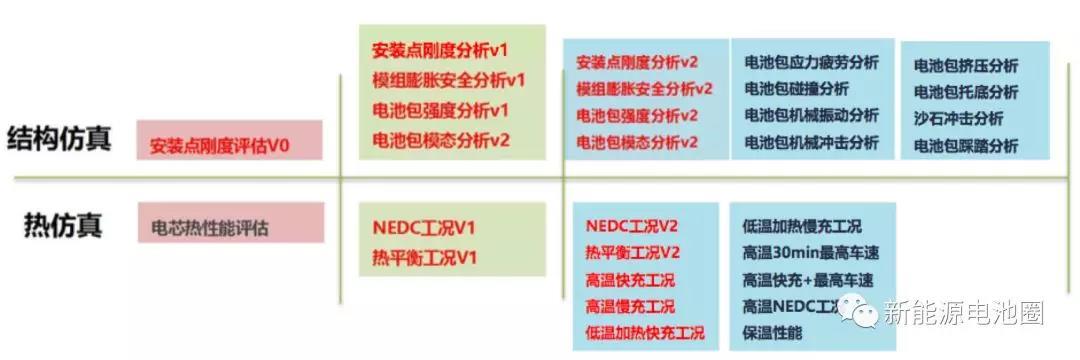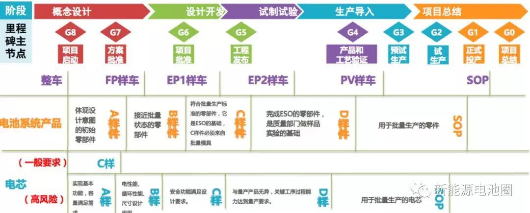 北汽的整車EVDP流程,每級子系統(tǒng)的開發(fā)驗證流程要先于母系統(tǒng),保證產品開發(fā)過程的可靠性。以上是基于電池系統(tǒng)與電芯同步開發(fā)情況下定義的開發(fā)流程。根據實際開發(fā)情況,會優(yōu)先選擇成熟度高的電芯產品。