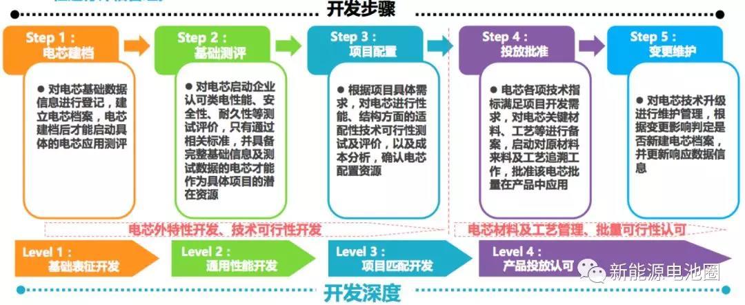 對電芯從外特性到內部材料、工藝進行分級開發(fā)管理,實現(xiàn)從應用的技術可行性向產品的批量可行性進行評估管理。