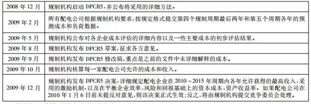 ▼表2 英國(guó)第5個(gè)配電價(jià)格控制周期(2010~2015年,DPCR5)過程